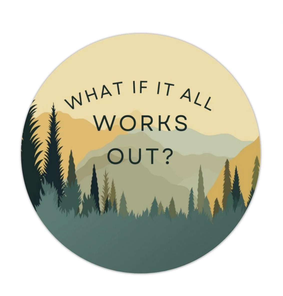 Even in our darkest moments, we can find the tiniest bit of hope by asking the question “What if it all works out?” To help us courageously and constantly look for hope, we designed stickers with this phrase. We hope you put it somewhere you’ll see each day and help us spread this message of hope around the world by giving stickers to those who you feel could use a little extra light and hope in their life. You’ll know who and when.